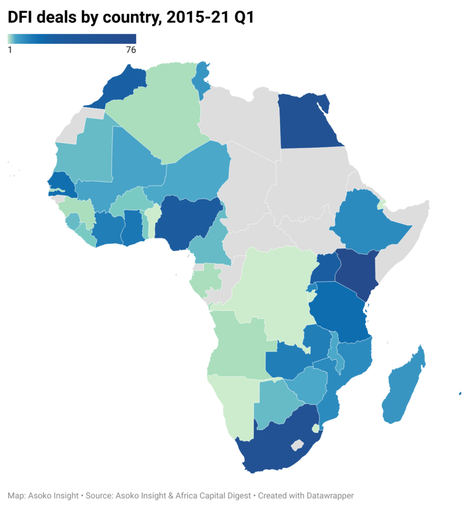 According to our data from Asoko Insight, the 15 European DFIs, the International Finance Corporation (IFC), Canada’s FinDev and the United States Development Finance Corporation (DFC), have deployed over $48 billion alone. in Africa between 2015 and the first quarter of 2021.