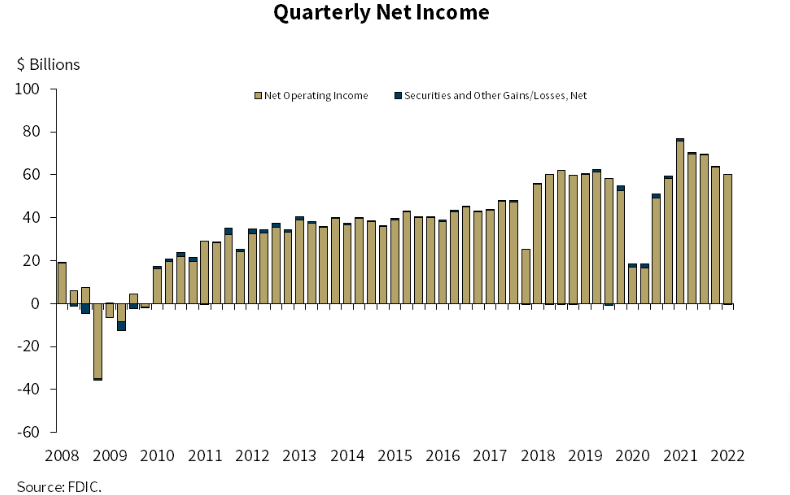 Banking sector quarterly net profit fell 22% in first quarter of 2022 from 2021, FDIC says report published on May 24. With community banks reporting a slight decline in net profit, credit quality improved with net interest margins remaining stable quarter-on-quarter (QT).